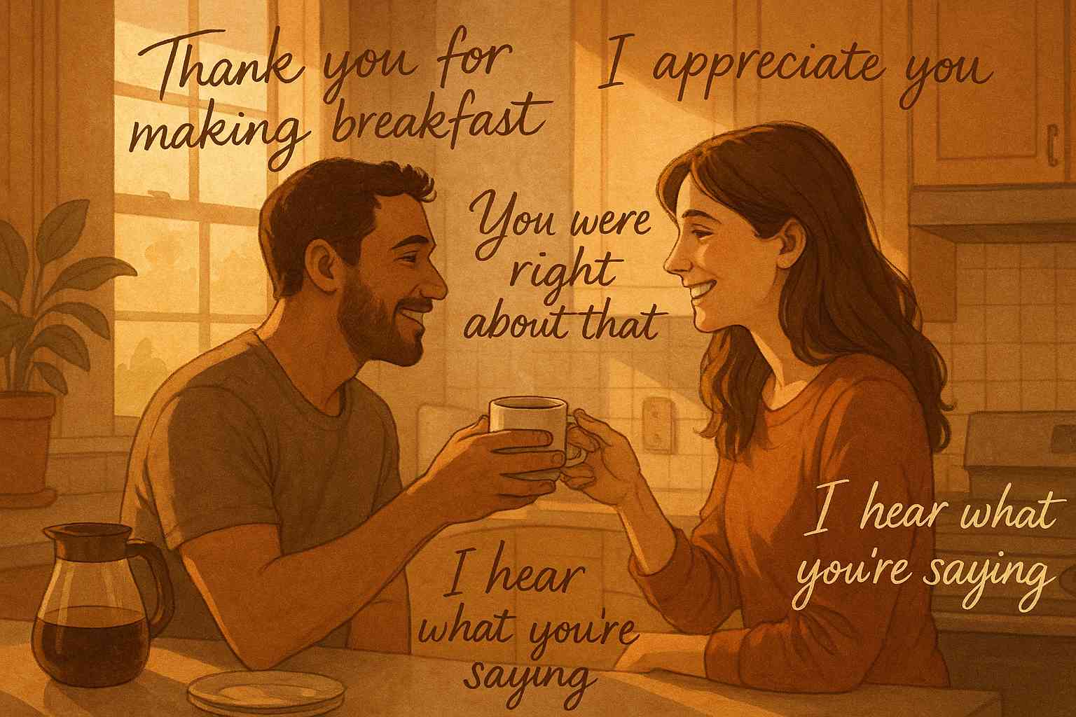 Especially that last one. When's the last time you thanked your partner for something small? For making coffee? For dealing with your mom's phone calls? For being patient when you're stressed about work?