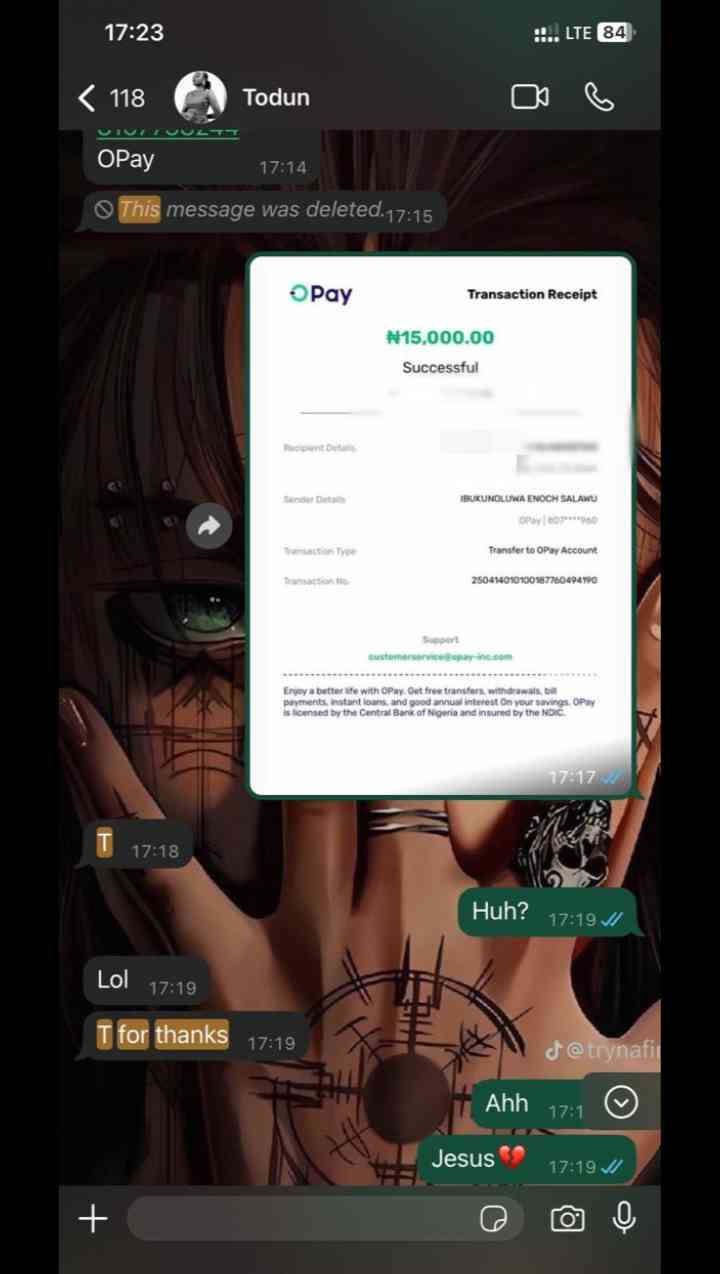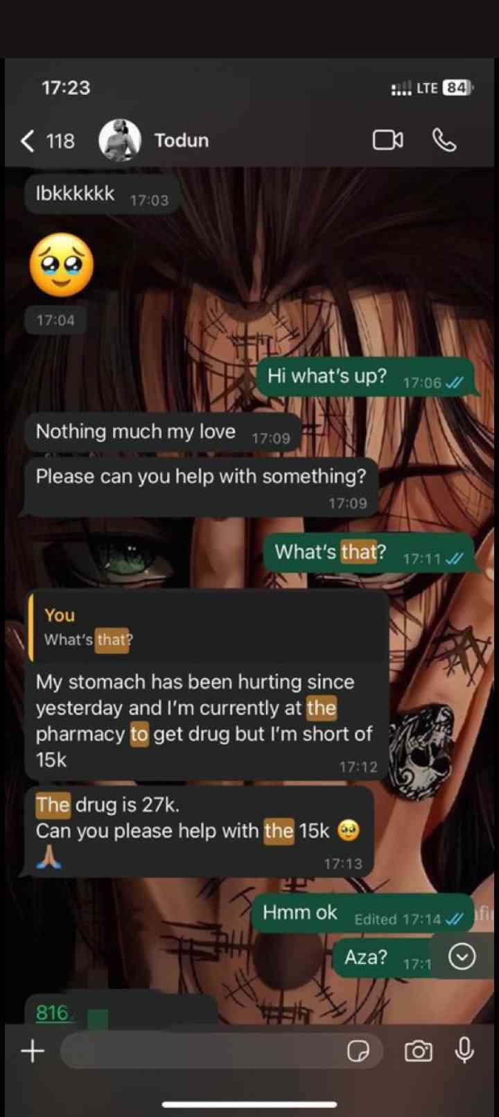 The worst part? After you help, they act like they've done YOU a favor by letting you help them. That "Lol" after receiving โฆ15,000 says everything about their attitude.